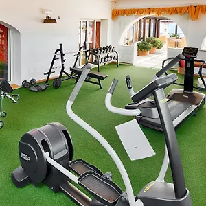 Grand Hotel Capo Testa dispose d'une plage de sable blanc avec des chaises longues et des parasols. Dans toute la propriété il y a un centre de fitness.