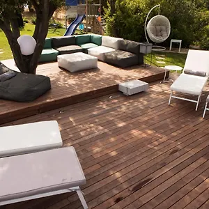 Een terras biedt een uitzicht over de zee. De gasten mogen ligstoelen en BBQ-voorzieningen gebruiken wanneer ze maar willen.