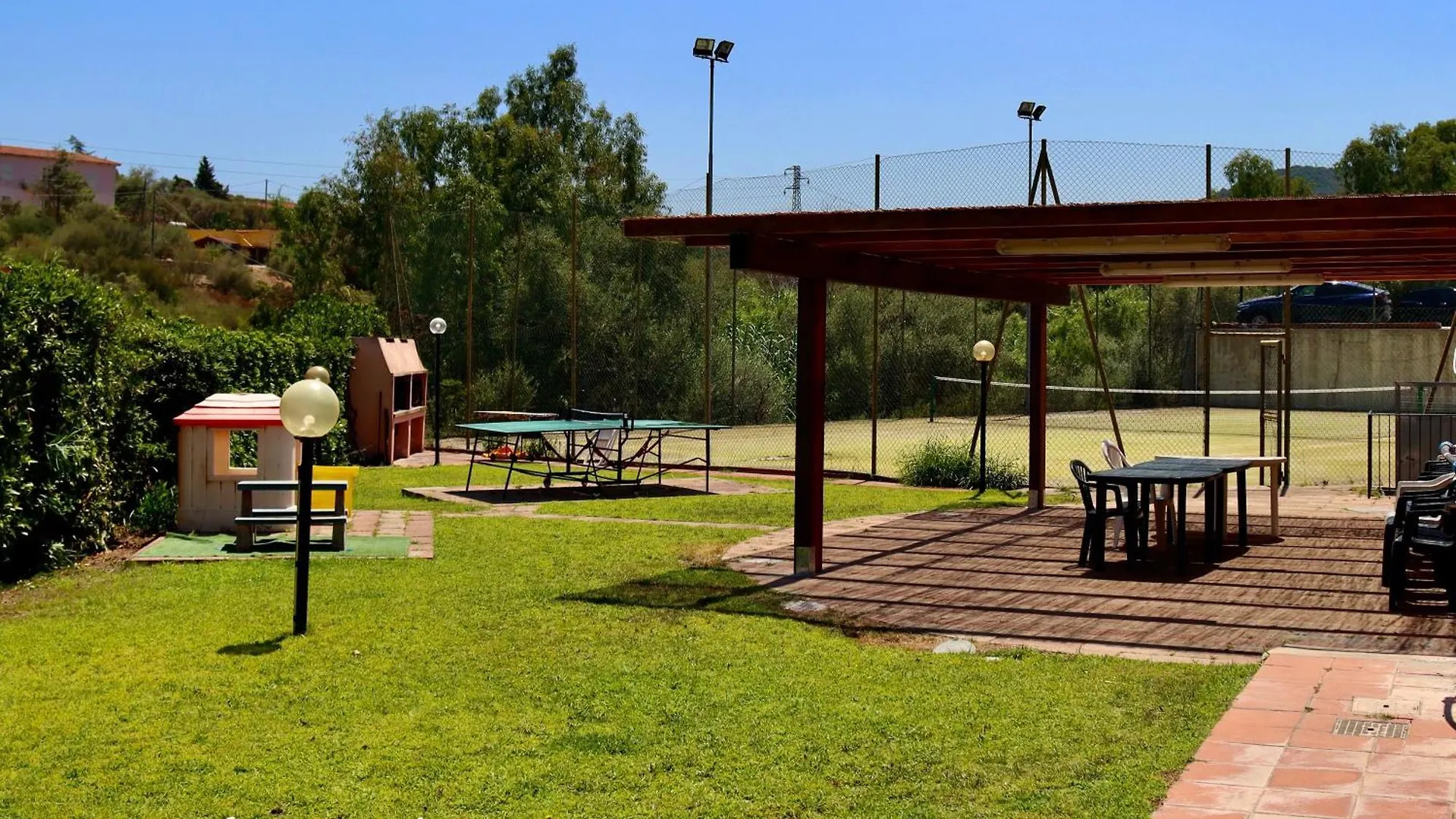 For adventure seekers, the location is a true paradise. Guests can explore the surrounding beauty through hiking trails, or engage in thrilling activities such as canoeing, fishing, snorkeling, diving, and windsurfing—all just a stone's throw away. Horseback riding and golf are also just minutes from the property, catering to a range of interests. Tennis enthusiasts will appreciate the well-maintained courts available on-site. Complementing the outdoor adventures are inviting dining spaces, including an outdoor dining area and picnic tables, perfect for enjoying meals al fresco under the sun. Whether lounging on sun loungers by the pool or enjoying a tranquil evening in the picnic area, the atmosphere is always serene and family-friendly, with no pets allowed and a strict no-smoking policy ensuring a clean, fresh environment for all guests. Overall, this accommodation provides a perfect blend of relaxation and adventure, making it an ideal choice for families and solo travelers alike.
